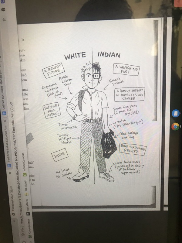 The class was reading The Absolutely True Diary of A Part Time Indian, a book about a native American boy who lives on a reservation, has troubles in school, reads books and draws cartoons.