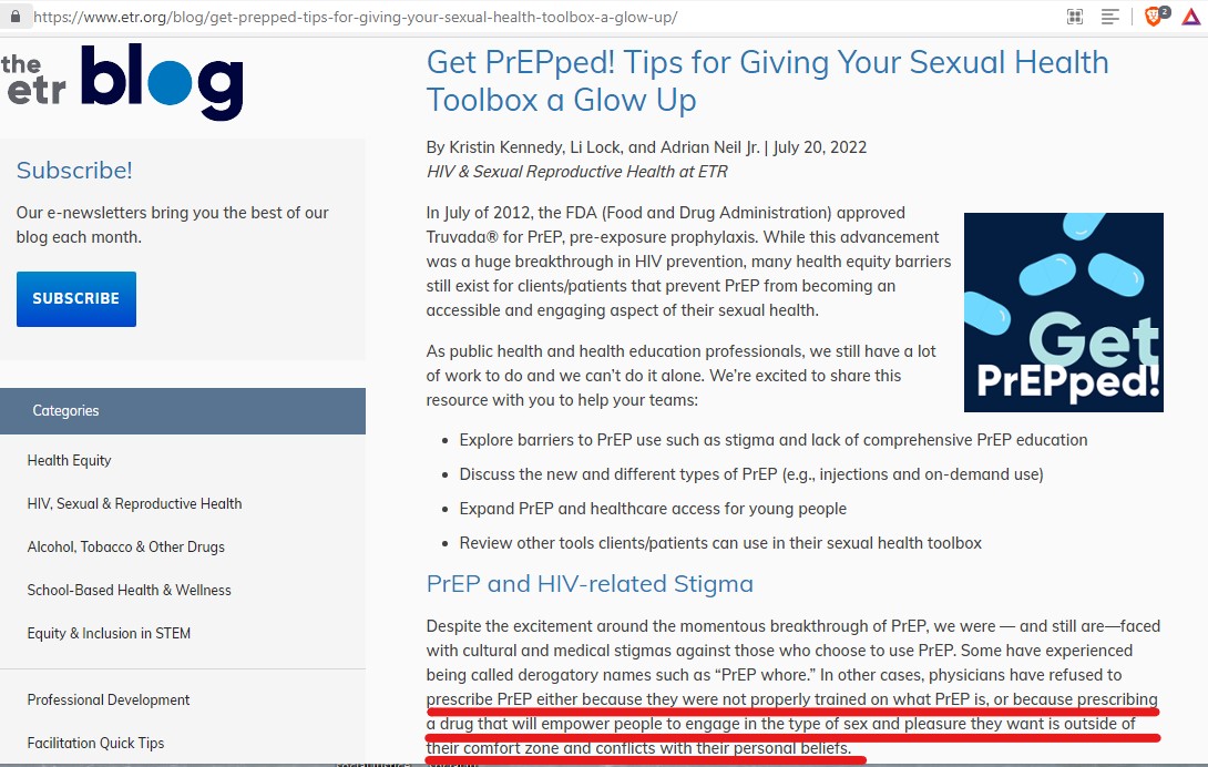 We know that Amplify partners with Planned Parenthood and PREP. We know that PREP is an activist organization which pushes abortion and contraception.