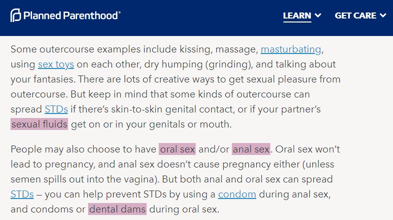 We know that Planned Parenthood teaches that abstinence can include “outercourse” which is everything but vaginal sex and that kids should try and ‘avoid’ sexually transmitted diseases.