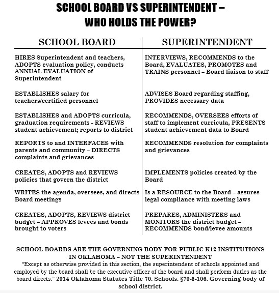 Here’s a table that gives you information on WHAT a School Board member should do – as opposed to what the Superintendent should do.