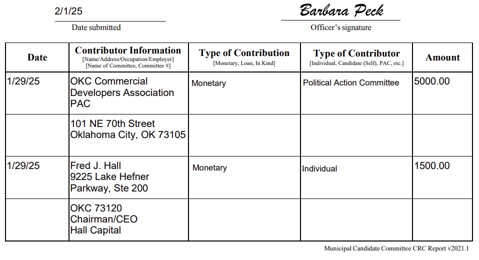 This got me more curious, so I went to the City of Oklahoma City ethics filings for Ward 3.
