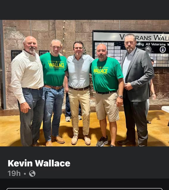 Here, you see Kevin Wallace in the background with then-Speaker-Elect Kyle Hilbert (foreground) stumping for Wallace at a campaign event in HD32.